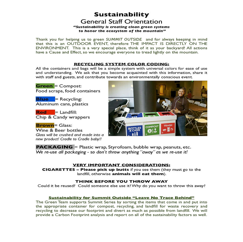 “If Summit Outside taught us one thing about large events it's that keeping a sustainable environment is an entire team effort. Not only Summit, but all business that we associate ourselves with must help achieve the goal. Thank you for being a fearless pioneer for us. Your contribution during the event and also post event will help us keep Powder Mountain beautiful and healthy. Thanks again!